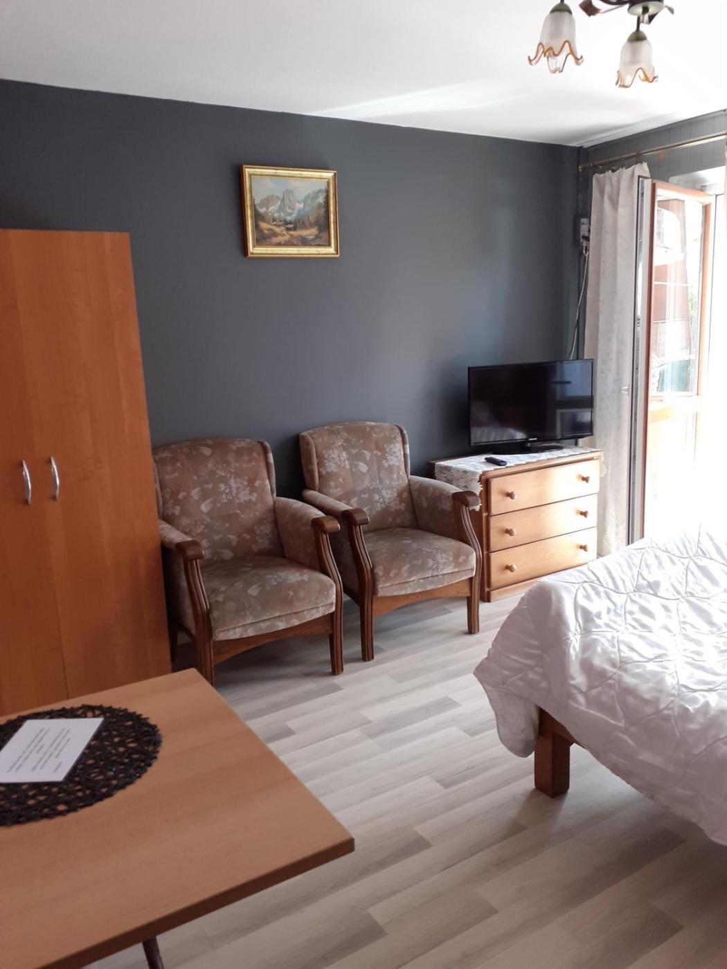 Pokój dwuosobowy. The double room features a wardrobe, an electric kettle, as well as a private bathroom boasting a walk-in shower. The double rooms kitchenette is available for cooking and storing food. This double room has a barbecue, heating, a flat-screen TV and an outdoor dining area. The unit has 1 bed. Pokój Dwuosobowy - 2 osobowy. Powierzchnia pokoju ok.: 12 mkw. ;