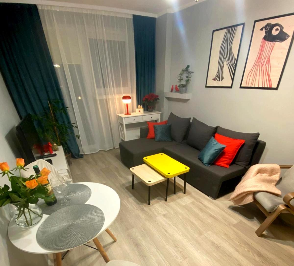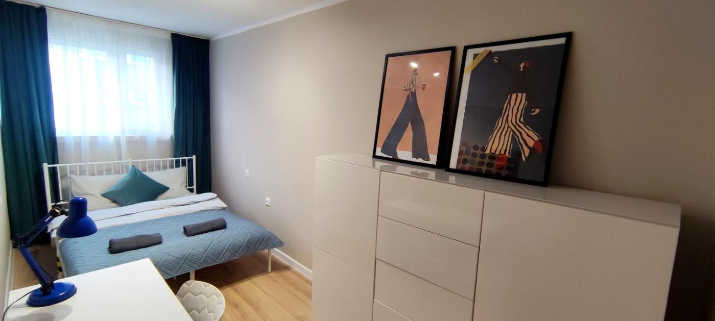 Apartament z 2 sypialniami. This apartment consists of 2 bedrooms, a kitchen and 1 bathroom with a bath and a shower. The fully equipped kitchen features a refrigerator, kitchenware, an oven and a microwave. The apartment provides a washing machine, a tea and coffee maker, a wardrobe, a flat-screen TV, as well as city views. The unit offers 2 beds. Apartament - 4 osobowy. Powierzchnia pokoju ok.: 40 mkw.