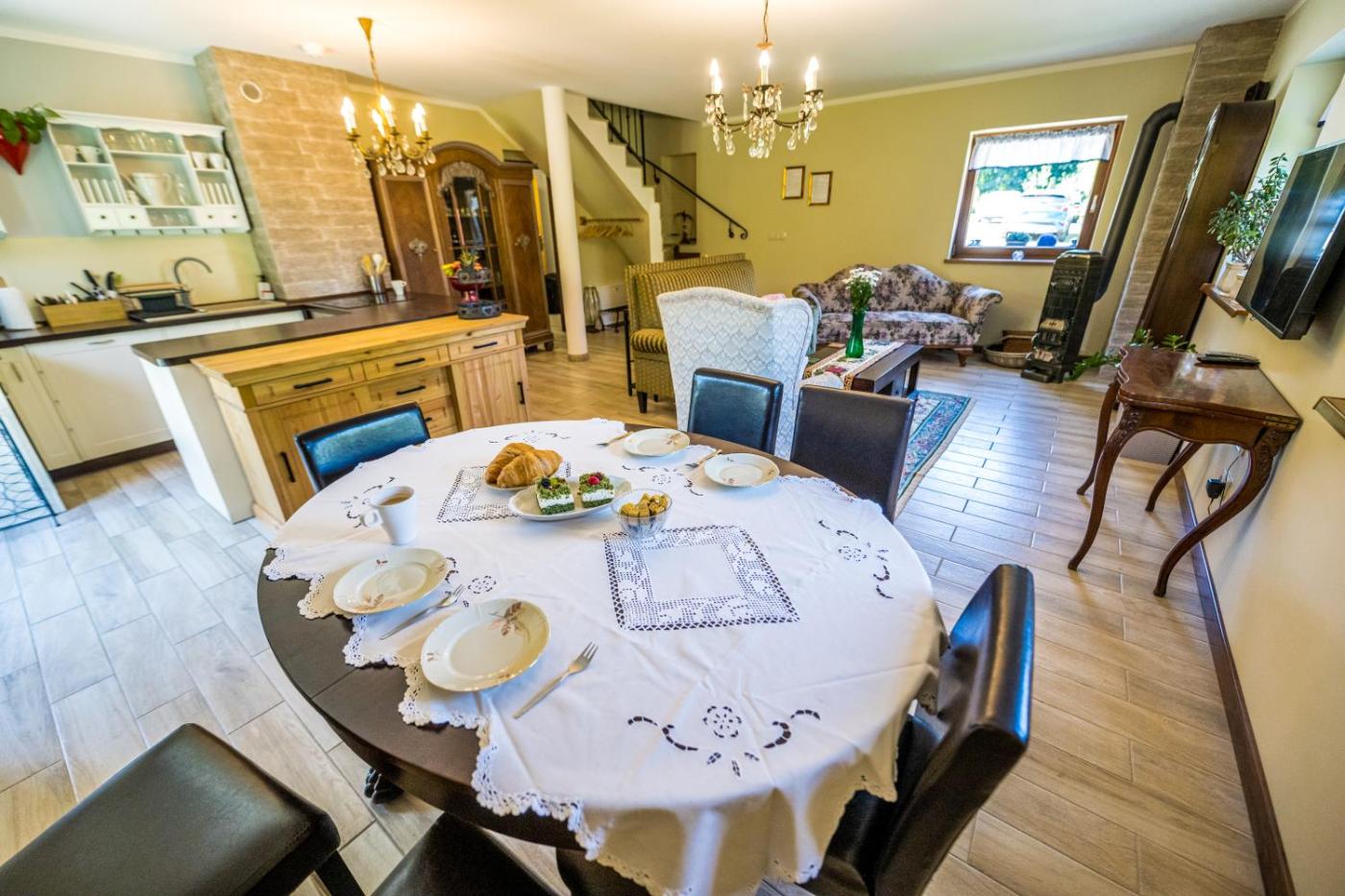 Apartament dwupoziomowy. This apartments special features are the sauna and the fireplace. This spacious apartment consists of 2 living rooms, 2 separate bedrooms and 1 bathroom with a shower and bathrobes. Guests will find a stovetop, a refrigerator, a dishwasher and kitchenware in the fully equipped kitchen. The apartment also offers a barbecue. Featuring a terrace with garden views, this apartment also provides a washing machine and a flat-screen TV with streaming services. The unit offers 5 beds. Apartament - 8 osobowy. Powierzchnia pokoju ok.: 150 mkw.