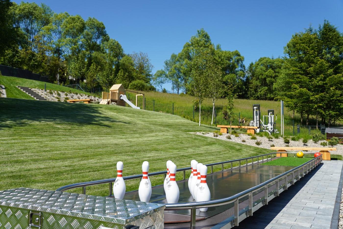 Obiekt Stylowe Beskidy - luksusowe domki z saunami i jacuzzi oferuje kręgielnię i plac zabaw.